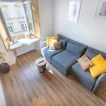 Este alojamiento ofrece un espacio de almacenamiento y una zona de estar, sofá y escritorio, además de climatizador, para una estancia agradable. El apartamento también dispone de TV de pantalla plana con canales vía satélite y televisión con múltiples canales, y servicios de seguridad, que incluyen detectores de humo. El baño privado está equipado con ducha a ras de suelo y ducha, además de secador de pelo y toallas.